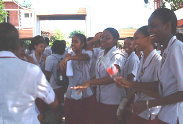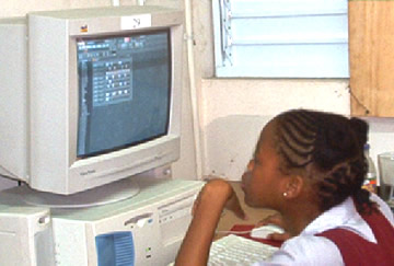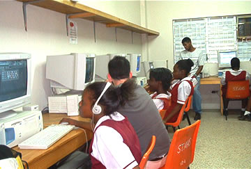 Howard Campbell is a teacher at St. Andrew High School for girls, just down the road from us in Halfway Tree. He is the head of the computer labs and the coordinator for all kinds of technology education at St. Andrew.We met him at the Harvard-Jamaica Association meeting where he had come with his friend Marvin, not because they were from Harvard or cared at all about a Harvard Alumni Association, but because they were educators interested in our project. In fact, it seemed that from experience both Howard and Marvin had learned that top-down organizations, such as the association we were forming and the school system in Kingston-St. Andrew were not the best way to get things done. They encouraged us to start from the teachers in the schools if we wanted to get in and start working. After seeing Wayne's demo, Howard offered St. Andrew as a good place to start. Yesterday we went to St. Andrew for the first time.