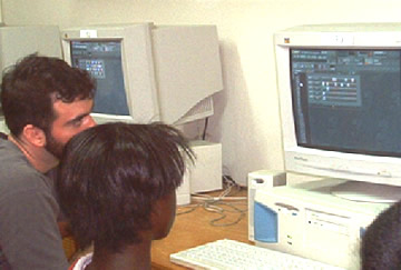 | the workshop proved to be quite productive, if a little cacophonous at times. (half a dozen computers blasting beats together in a small room can create quite a sound clash, to use the local term; headphones are helpful). through their own predilections, and the contingent curve-balls of the creative process, the girls came up with some diverse stylings. "catherine's rock rhythm" (as she titled it), probably takes its name from the "dirty-guitar" sample that, unfortunately, is missing here since i seem to be missing it in my own sound bank (i am converting it to mp3 on my laptop today, away from the school). nevertheless, it puts a strong foot forward with its bouncy bed of techno--not the most popular genre here but one in which a couple of girls decided to create. sydoney and zelieka collaborated to create a rhythm that, while borrowing from the neptune's ubiquitous grindin' beat (in the third and fourth bars of each six-bar, AABBAA phrase), almost defies category with its future-funk, electro-slanted hip-hop. and "shanika's hip-hop beat" is, quite honestly, one of the illest things i have heard in a while. not bad for a first try, at any rate. it was a promising initial workshop, the fruits of which we will soon appear as well on the new st. andrews high school web-page, built on skyBuilders technology so that howard, or better, interested students, can manage it themselves quite easily. i am excited by the new palpability of the digital music project in kingston. we've already got some music, which means young kingstonians can already begin sharing their efforts with their peers in boston and vice versa. | ![]() |