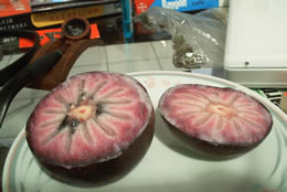 Sunday is a tough day to try to show someone around Kingston because almost nothing is open. We cooked some ackees and saltfish, walked to Devon House and got some ice cream, and hung around the house a bunch. We made Nick eat about 6 different kinds of fruit he had never seen before. (I am so sure that you are all sick of my fruit obsession by now, but I am going to include a couple of pictures of star apples. This is our newest fruit discovery and it is easily the weirdest looking fruit we've encountered so far. Also, it tastes like a huge, delicious Concord grape. See below.) In the evening we wanted to get Jamaican dinner, but that was impossible because it was Sunday. We opted for Chinese, because, as everywhere, Chinese restaurants are always open when nothing else is. So we set out to walk up Hope Rd. to a little street with a bunch of Chinese restaurants.